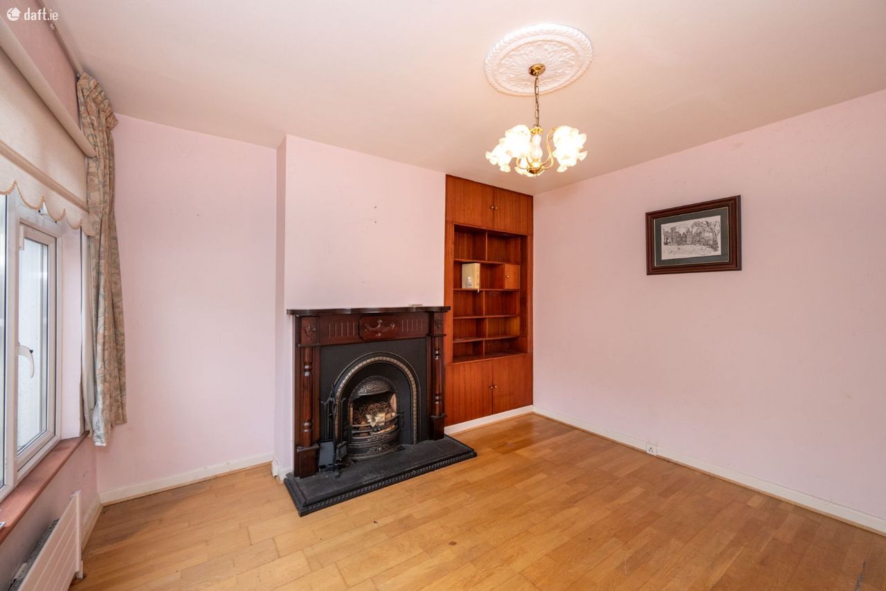 FAMILY ROOM; 3.72 X 3.60 Elegant teak open fireplace with cast iron inset. Fitted alcove unit, timber flooring.