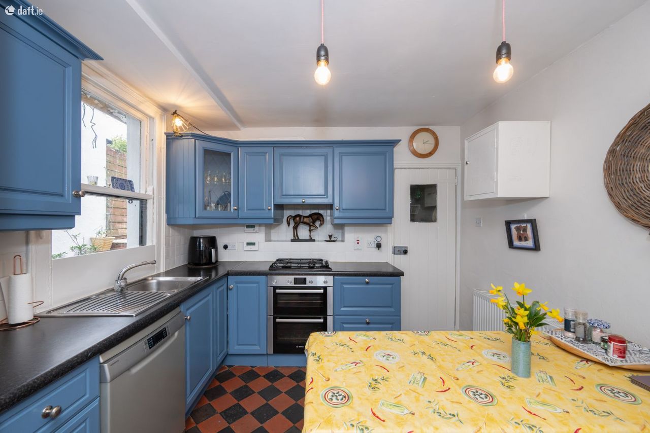 Fully fitted kitchen units , single drainer sink, plumbed for dishwasher, tiled floor.